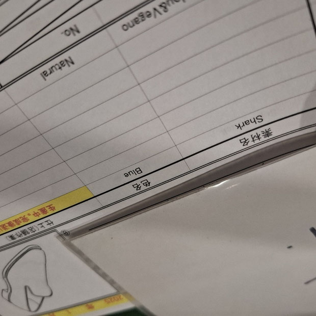 シャークスキンのブルーもまた違った青さに感じられて良い感じですよ。