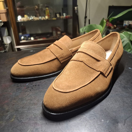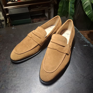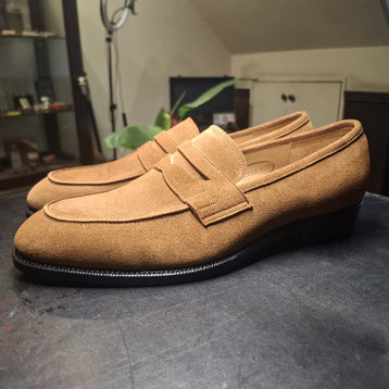 ドレススタイルからジャケットスタイルまで素材感の生きた高級感有るスエード靴に仕上がります。
