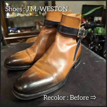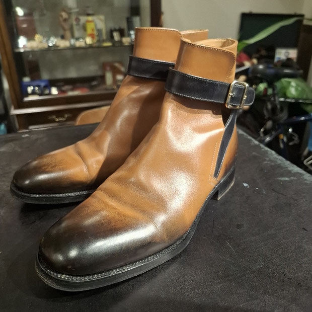 『JM.WESTON ジョッパーブーツ』クラッシックな風合いへ 焦げ茶に染替え(リカラー)です。
