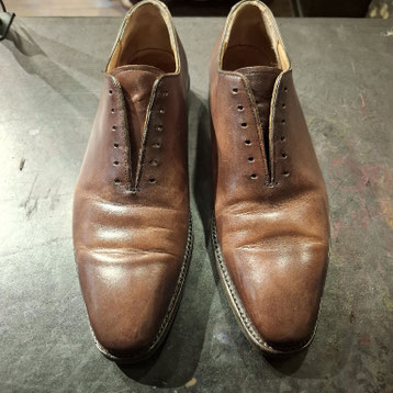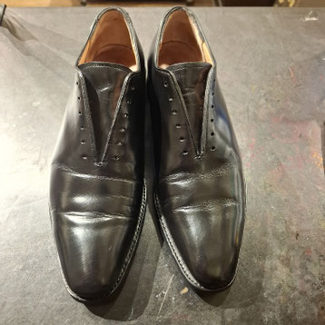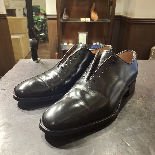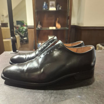 染替え後の深いブラックカラーが元々高級靴では有りますが更に高級感を2割増し?